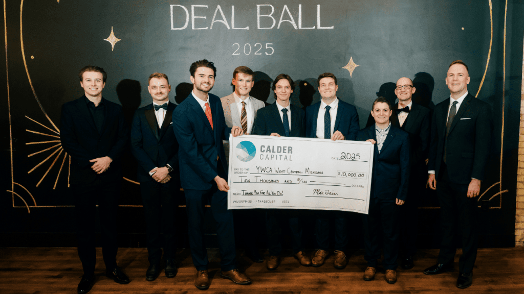 Grand Rapids, MI – December 5, 2025 – Calder Capital, a nationwide leader in mergers and acquisitions advisory services, celebrated a year of growth and gratitude by donating $30,000 to three local charities during its annual Calder Deal Ball. Held at The Rutledge in Grand Rapids, the event brought together 150 attendees, including clients, business associates, and staff, to celebrate a remarkable year of achievements while giving back to the community.