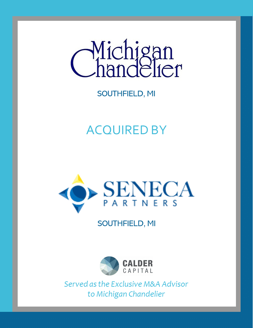 Calder Capital, LLC is very pleased to announce the successful acquisition of 100+-year-old multi-location stalwart Michigan Chandelier, Inc. of Southfield, MI by Uniprop Corporation of Birmingham, MI and Seneca Partners of Southfield, MI.