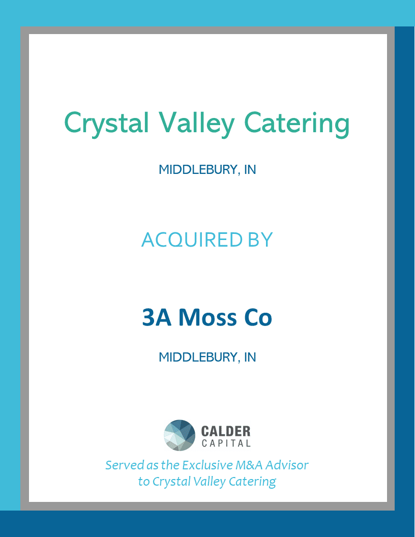 Calder Capital, LLC is pleased to announce the acquisition of Crystal Valley Catering of Middlebury, Indiana by 3A Moss Co.