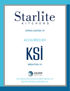 Calder Capital, LLC, is thrilled to announce that Starlite Kitchens and Baths, Inc., of Byron Center, Michigan has been acquired by KSI Kitchens of Brighton, Michigan!