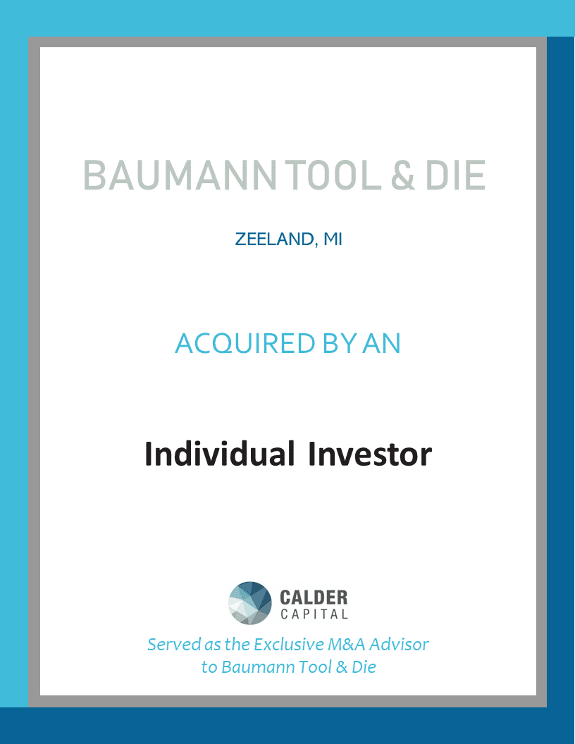 Calder Capital, LLC was the exclusive representative of the seller, Baumann Tool & Die of Zeeland, Michigan.