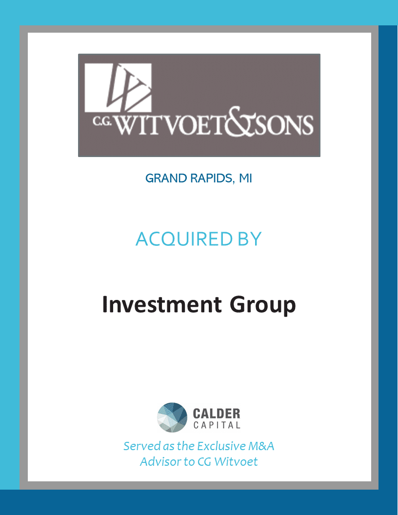 Calder Capital represented the C.G. Witvoet & Sons as its exclusive Mergers and Acquisitions Advisory firm.
