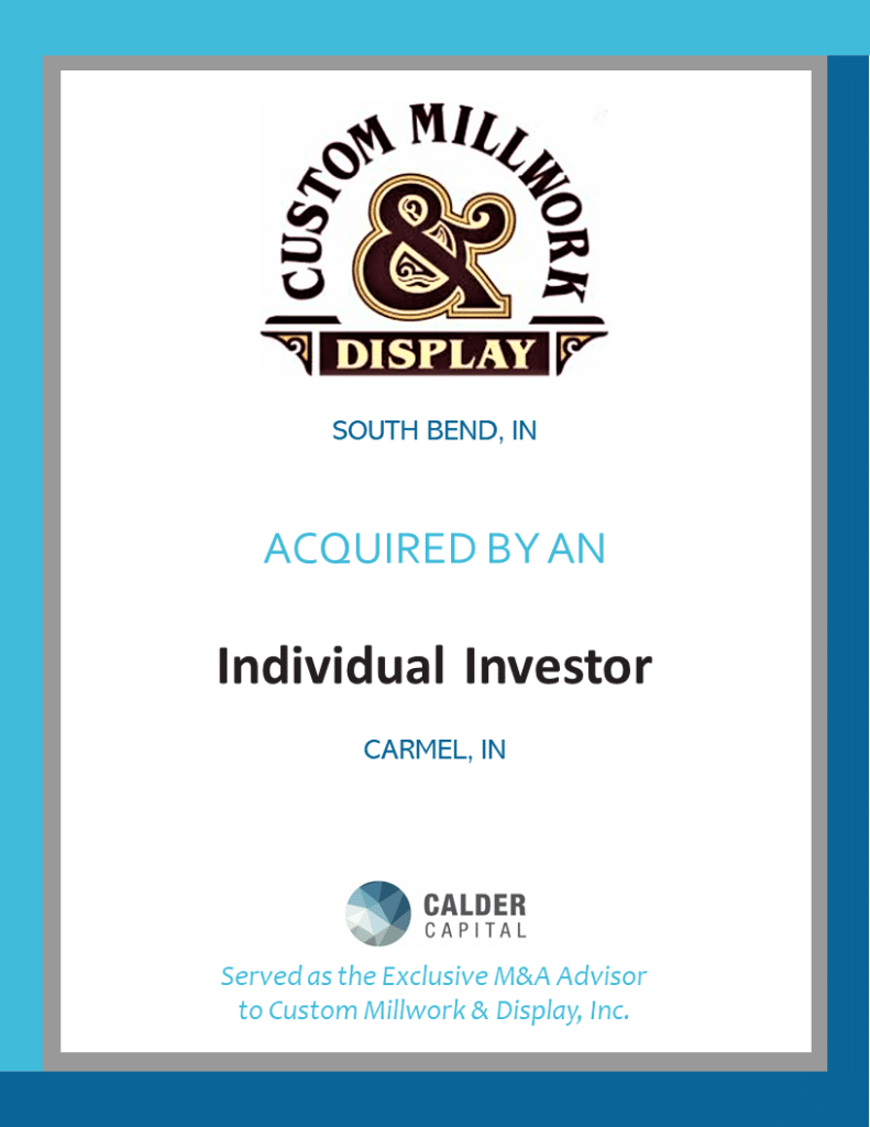 Calder Capital, LLC is proud to announce the acquisition of Indiana-based Custom Millwork & Display by an individual investor!