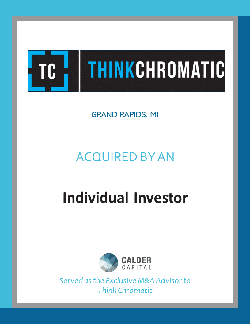 Calder Capital is pleased to announce that Grand Rapids, MI-based Think Chromatic, LLC, has been acquired by Individual Investor, Matt Emery.