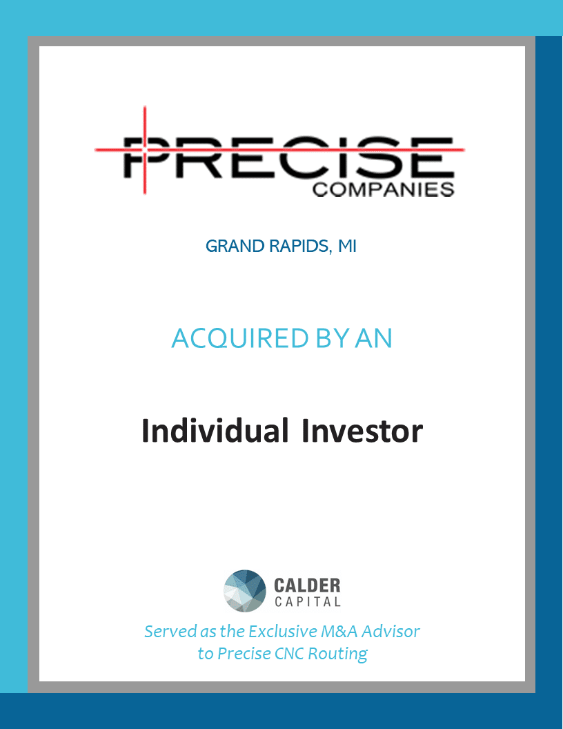 Calder Capital, LLC served as the exclusive M&A Advisor for Precise CNC Routing with Matt Uhl, Calder Capital Mergers & Acquisitions Associate, serving as the Lead Advisor.